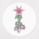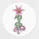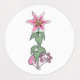 A cute axolotl waves from behind the stem of a stargazer lily.