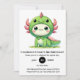 A sweet axolotl wearing a green dragon hoodie with cute blush and pink gills, standing cheerfully on grass. A perfect blend of innocence and fantasy for any playful design.