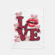 Imagine vibrant red lips puckering playfully within the heart of the "O," while adorable axolotls peek, hug, and curl around each letter— from the cheeky one dangling from the "L" to the trio tumbling joyfully on the "V" and "E." Set against a crisp white canvas dotted with cheerful pink spots, this design isn't just a blanket; it's a whimsical tribute to love, friendship, and all things endearing.