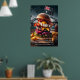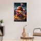 Satisfy your Ayers Rock-sized appetite with this delicious Outback Burger. A thick kangaroo beef patty, grilled to juicy perfection, is topped with a fried egg, vibrant beetroot slices, crispy bacon, and a generous smear of smoky barbecue sauce, all stacked high on a toasted damper roll. A small Australian flag adds a touch of Outback charm, while a backdrop of the Sydney skyline completes this Australian culinary experience