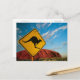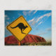 Kangaroo sign in front of Uluru (Ayers Rock) early in the morning as the sun turns it bright red.