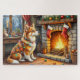 Azawakh Sitting by Fireplace with Christmas Lights Jigsaw Puzzle