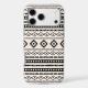 Aztec influenced mixed motifs pattern in black detail on a cream color background.