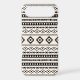 Aztec influenced mixed motifs pattern in black detail on a cream color background.
