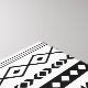 Aztec mixed motifs pattern in black detail on a white background monochrome design.