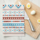 Aztec Blues Red Cream Mixed Motifs Pattern Tea Towel