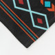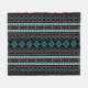 Aztec style mixed motifs pattern in turquoise blue and light blue, red and dark red detail on a black background. H = Horizontal pattern along the length of the blanket.