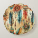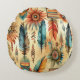 Aztec Boho Tribal Blue Feathers Round Cushion