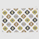 Aztec influenced stylised surface pattern design in black and faux gold colour, and faux bronze colour and grey symbols on a white background.