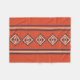 Aztec ethnic bohemian pattern with geometrical shapes in orange, beige and dark blue colours on striped background for everybody who likes colourful native American design.