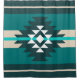 Aztec ethnic bohemian pattern with geometrical shapes in white, beige and turquoise colours on striped background