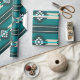 Aztec ethnic bohemian pattern with geometrical shapes in white, beige and turquoise colours on striped background