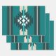 Aztec ethnic bohemian pattern with geometrical shapes in white, beige and turquoise colours on striped background