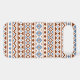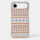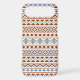 An Aztec style design in a digital and vector pattern with rust/terracotta color and blue detail on a cream background.