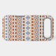 An Aztec style design in a digital and vector pattern with rust/terracotta color and blue detail on a cream background.