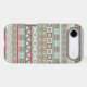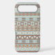 An Aztec influenced style of design in a digital and vector pattern in blue, cream and terracotta colors.