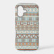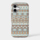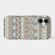An Aztec influenced style of design in a digital and vector pattern in blue, cream and terracotta colors.