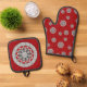 The design printed well on the oven mitt and pot holder, keeping its bold red color. It made a great gift.