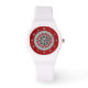 A simple geometric pattern on the outside, inspired in part by ancient Aztec designs, surrounds an alien themed layer, a gradient layer, and a simple squiggle layer in this concentric circle design. This watch is available in a variety of sizes, colours, and styles, including sizes for both kids and adults.