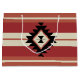 Aztec ethnic bohemian pattern with geometrical shapes in red, orange, grey and black colours on striped background