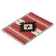 Aztec ethnic bohemian pattern with geometrical shapes in red, orange, grey and black colours on striped background