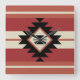 Aztec ethnic bohemian pattern with geometrical shapes in red, orange, grey and black colors on striped background