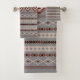 Aztec Rust Cream Brown Grey Mixed Motifs Pattern Bath Towel Set