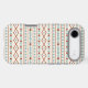 Aztec influenced shapes and line pattern in rust/terracotta color teal color detail on a cream color background.