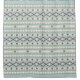 Aztec influenced shapes and line pattern in rust/terracotta colours and a cream colour detail on a teal-blue background.