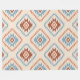 An Aztec style motif in a surface pattern design in blue, cream and terracotta colours.