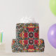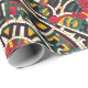 Vibrant Aztec-inspired wrapping paper featuring a bold geometric pattern in rich red, green, yellow, and black tones. This unique design adds a touch of cultural flair to any gift, making it perfect for festive occasions, birthdays, or special celebrations. The intricate patterns reflect traditional Aztec motifs, offering a distinctive and artistic look.