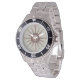 Has heft and feel of expensive stainless steel quartz watches. Good band with safety catch. I removed links, which is easy because engraved arrows show direction to push the linking pins. As always by this seller, the image (a railroad logo) is a perfect reproduction of my emailed image, and is precisely spaced and aligned.