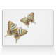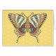 The wings, body, and antennae of a swallowtail butterfly are decorated with patterns found in sculptures and codexes left by and about the Aztec or Mexica. Bright whites, yellows, blues, and reds balanced by browns and blacks paint the geometric shapes and repeating motifs.