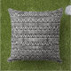 Aztec Triangles+Squares Pattern White on Black Cushion