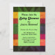 Baby shower Invitation. Colourful with blue, green, dark pink, and orange on this retro 70's style invite. Let's go tribal with this Aztec abstract design on the front and back of this flat card. The pattern is in shades of blue, purple, and light brown or tan. Replace the information with your own. All customisation is available for the front and back of the card.