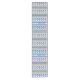 Tribal pattern table runner with an aztec pattern in blue black and white.