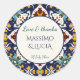 Azulejo blue Portuguese Mediterranean favour Classic Round Sticker