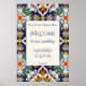 Azulejo blue Portuguese Mediterranean Morocco ornate tile pattern wedding welcome sign poster editable template instant digital download personalised wedding entrance decor
