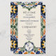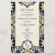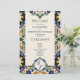 Azulejo blue Portuguese Talavera tiles vintage Mexican wedding program cards, Mediterranean ornate Talavera tile pattern wedding program Hacienda style wedding stationery