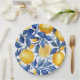 Azulejo Lemons Blue Leaves Pattern Paper Plate