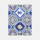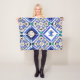 Azulejo Spanish Pattern Tiles Navy White Monogram Fleece Blanket