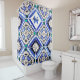Azulejo Spanish Pattern Tiles Navy White Monogram Shower Curtain