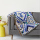 Azulejo Spanish Pattern Tiles Navy White Monogram Throw Blanket