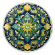 This ceramic knob features an intricate floral medallion in rich shades of yellow, teal, and green, set against a deep navy background. Inspired by azulejos—the famed hand-painted glazed tiles of Portugal and Spain—its symmetrical design combines stylised petals, curling vines, and ornate flourishes to create a sense of timeless elegance. The dark backdrop makes the central floral starburst and surrounding details glow with vibrant contrast, adding depth and sophistication.