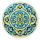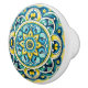 This ceramic knob features a vibrant circular medallion design in shades of turquoise, golden yellow, and deep navy, enriched with fine detailing inspired by azulejos—the celebrated hand-painted glazed tiles of Portugal and Spain. The central floral rosette radiates outward into layers of ornate petals, scrolls, and geometric flourishes, framed by a repeating border that creates perfect symmetry. The combination of bold colours and intricate patterns gives it a striking yet timeless Mediterranean character.