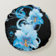 Azure Bloom Elegance Round Cushion