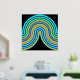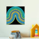 Beautiful contemporary azure blue, aqua turquoise, teal green, and real gold foil coloured geometric abstract wave lines pattern on a black background. Elegant, stylish, and eclectic minimalism design for the artistic hip trendsetter, vintage retro art style, or abstract digital geometric motif lover. Match this design with your interior decor colours and decorate your wall with something exclusive and unique on your wall!