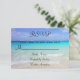 An RSVP with a white sandy beach with gentle waves and a vivid ocean view of crystal clear turquoise waters. Bright blue sky and soft fluffy clouds overlook this dreamy tropical caribbean vacation spot.