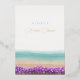 Bridal Shower Invitation with Bright azure and pink magenta nature landscape with blooming coast and mountains. Sunny Nature floral landscape. Silhouettes of mountains, sea coast and bright pink and purple flowers. Watercolor painting background Bridal Shower Invitation. Azure Coast in Bloom Collection.