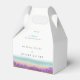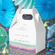 Wedding Favour Box with Bright azure and pink magenta nature landscape with blooming coast and mountains. Sunny Nature floral landscape. Silhouettes of mountains, sea coast and bright pink and purple flowers. Watercolor painting background Wedding Favour Box. Azure Coast in Bloom Collection.